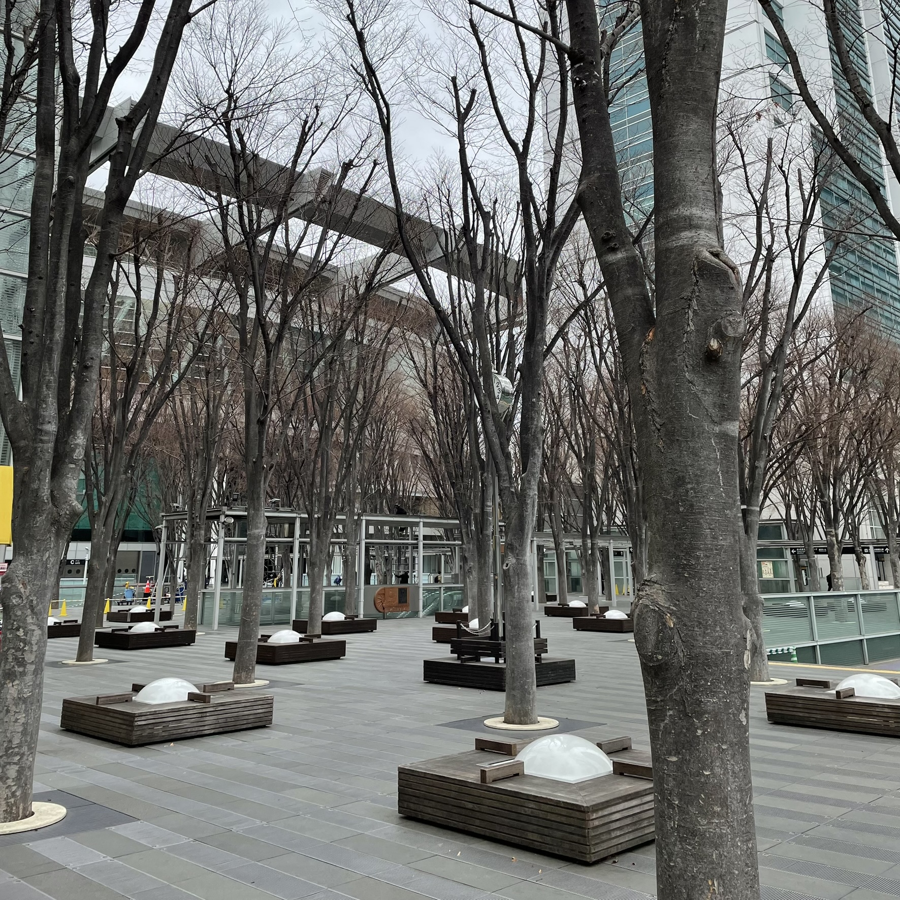 凛とした冬のけやき並木に、ここがデッキの上であることを一瞬忘れてしまう。